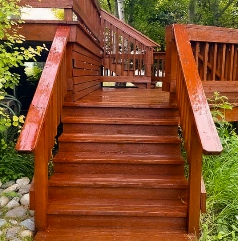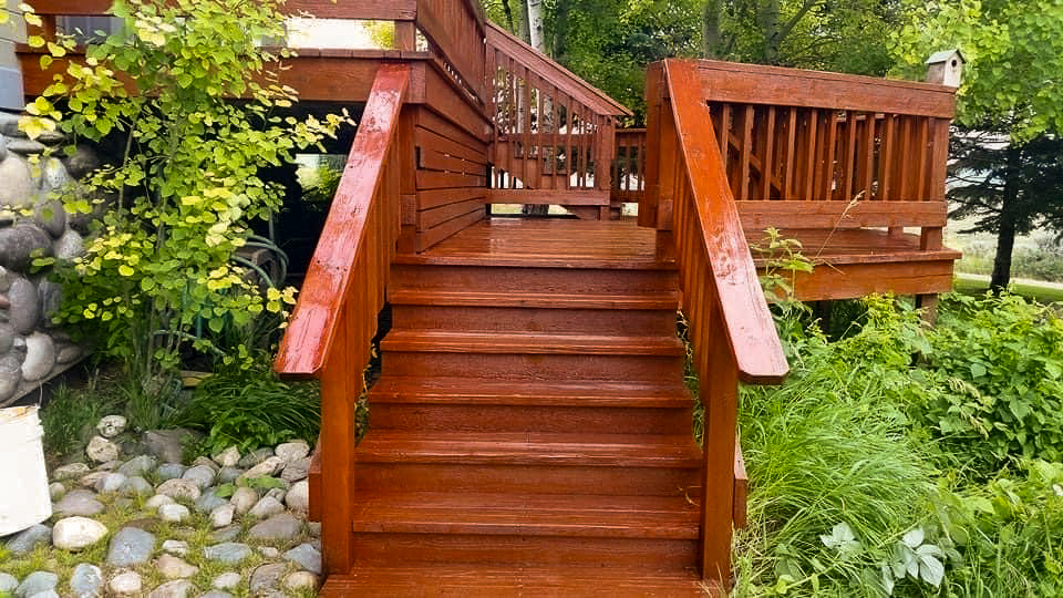 Deck staining and light deck building services to improve appearance, extend the life of your deck, and create a usable outdoor space.
